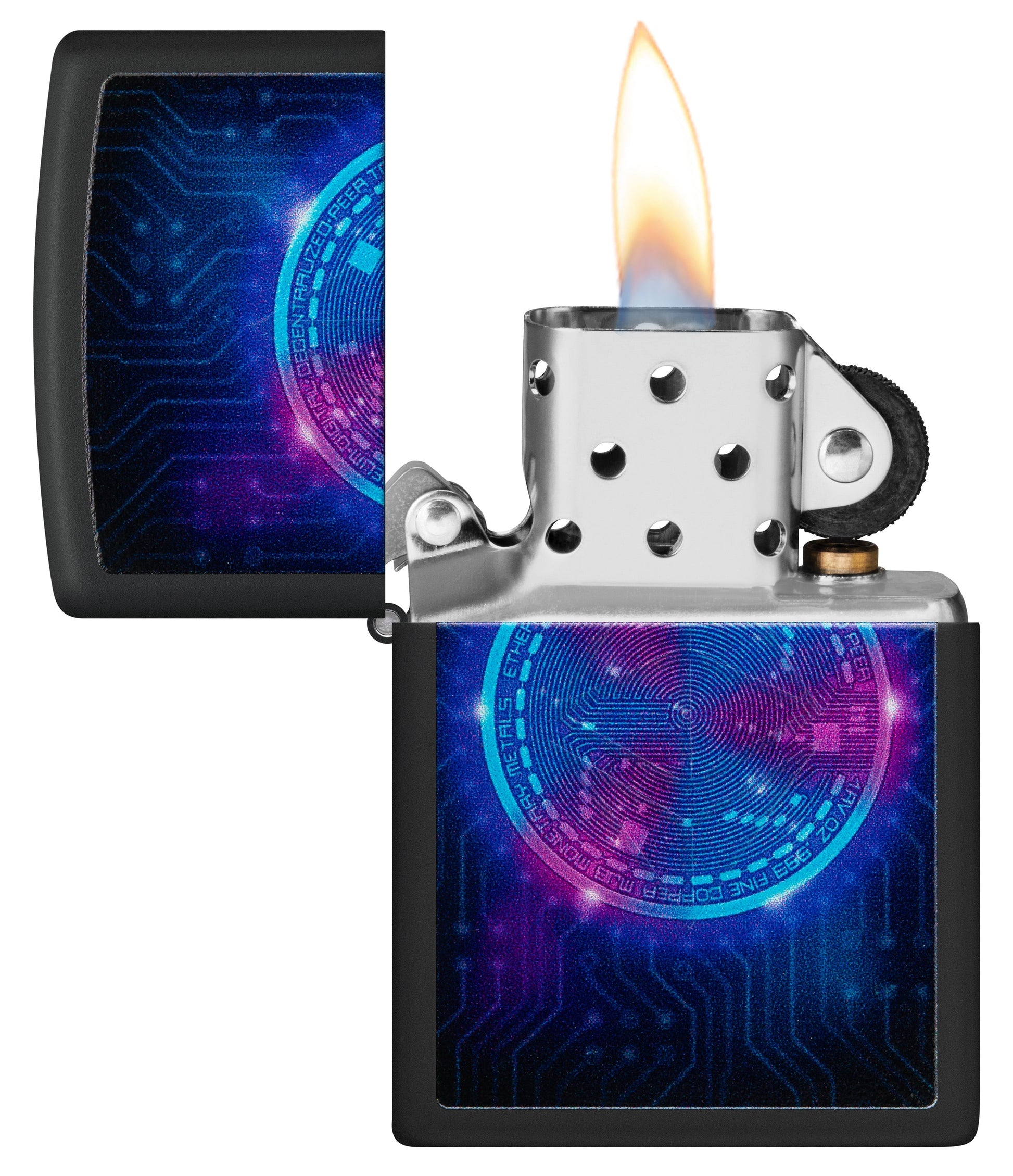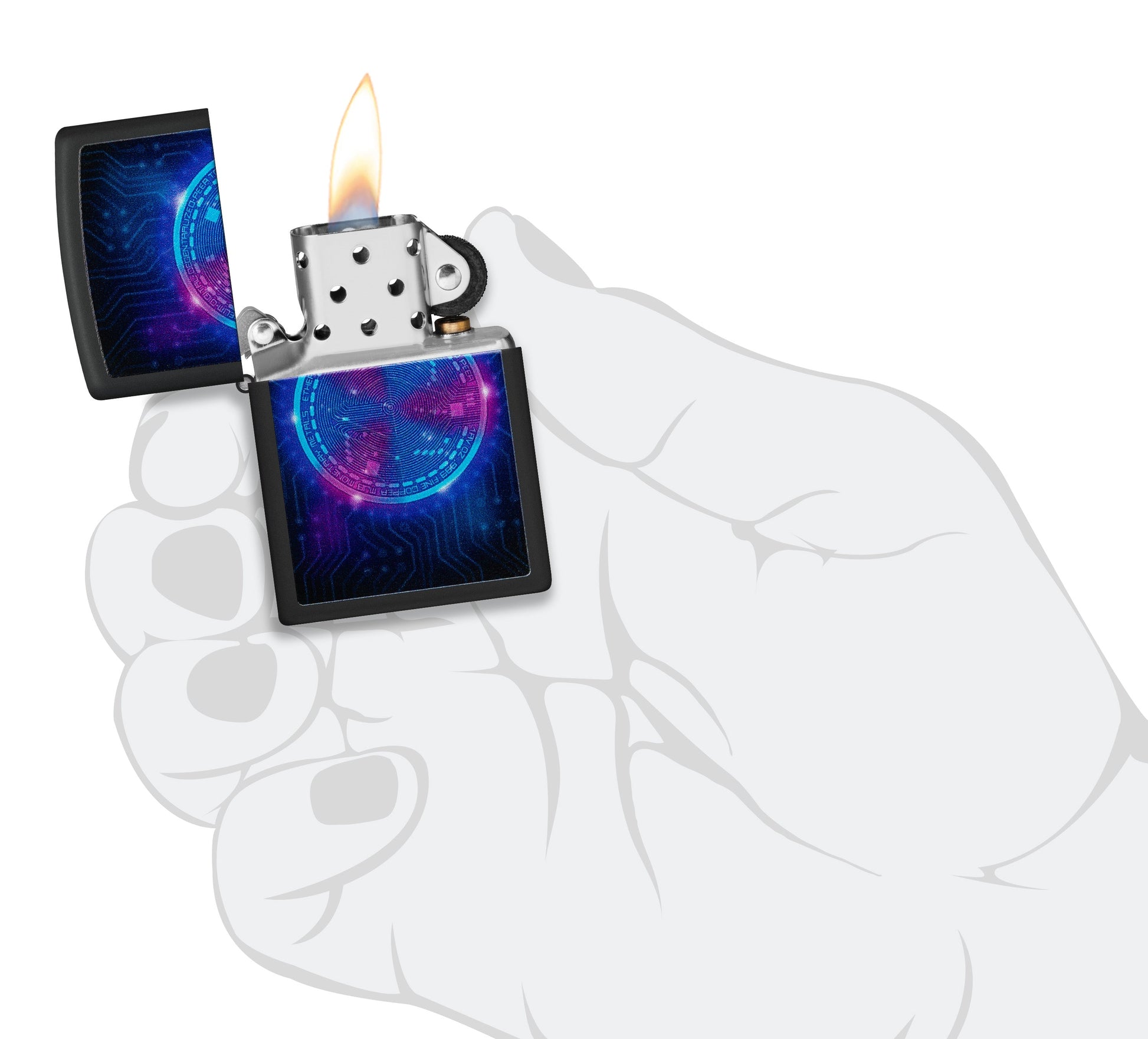 Het Etherium-design is een indrukwekkende aansteker die de fascinerende wereld van de cryptocurrency Etherium belichaamt. Met zijn opvallende matzwarte afwerking is het een echte blikvanger voor alle fans van cryptocurrencies en technologie. Deze aansteker wordt niet alleen gekenmerkt door zijn uiterlijk, maar heeft ook een speciale eigenschap: hij gloeit onder blacklight. Het zwarte matte oppervlak ziet er mysterieus en futuristisch uit onder blacklight, wat de aansteker een extra aantrekkingskracht geeft.