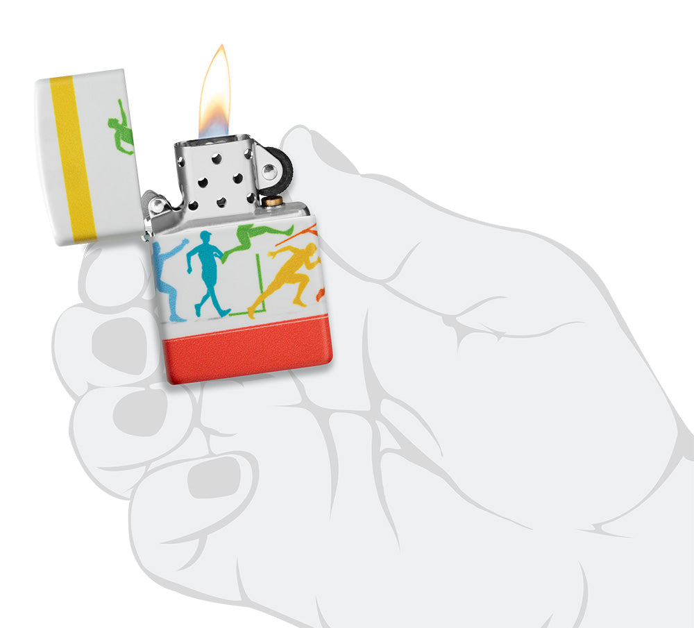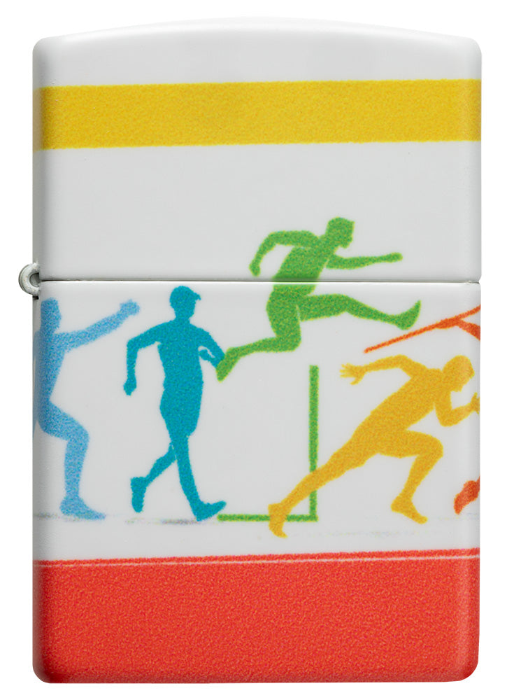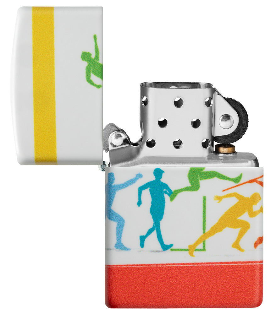 Van hordelopen tot polstokhoogspringen, je favoriete zomerspelen zijn schitterend vastgelegd op deze verbluffende 540 Color aansteker. Deelnemers verschijnen in silhouet tegen een achtergrond met kleurblokken aan elke kant van de spannende aansteker.